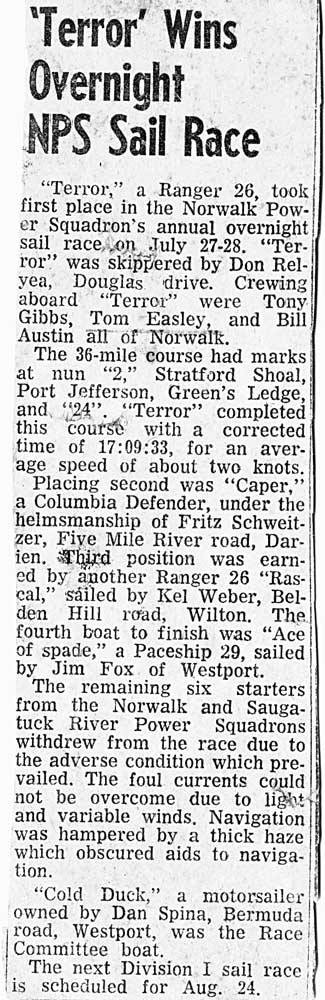 Don’s true passion was sailing. Many, many memories were created on his first yacht, Terror racing and cruising on the Sound. In 1978, a 27-year partnership with his friend Fritz emerged, co-owning yacht Dyad. This partnership proved “a force to be reckoned with” in the racing community on Long Island Sound. Don served as Commander of the Norwalk Power Squadron, teaching safe boating and navigation courses. He served as Norwalk Harbor Master. Don managed his own “Yacht Service” business, specializing in corrosion mitigation, for many years. Don was an active member of the Corinthians, and a life member of Mystic Seaport. He shared his passion for racing and cruising with his family.