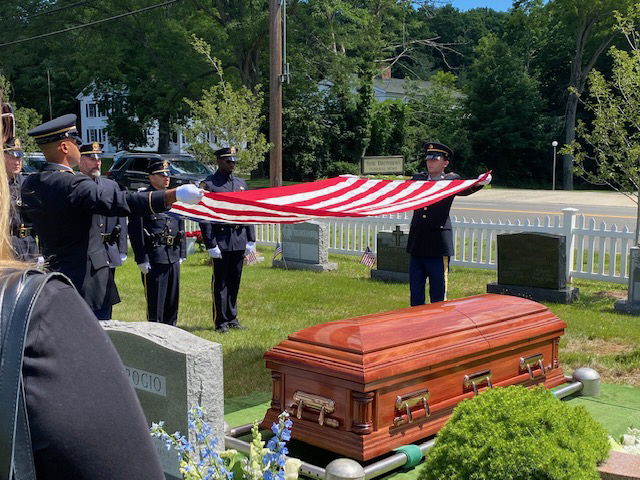 John P. “Jack” Ambrogio, Ret. Chief, HPD, age 87, beloved husband of Maureen O’Connor Ambrogio, passed away at Yale-New Haven Hospital on June 19, 2021. John was born on March 25, 1934 to the late Rose DelGrego Ambrogio and William Ambrogio. He grew up in Hamden and graduated from Hamden High School. After serving in the United States Army, he joined the Hamden Police Department in 1956. He was appointed Police Chief by Mayor Lucien DiMeo on September 5, 1974 and continued to serve until his retirement on October 7, 1998. Chief Ambrogio sought to improve the quality of the service of his organization. Recognizing the need for better communication with the public, he sought the help of Hamden Mental Health Services. Under the direction of Dr. Tom Reid, the officers took part in training sessions of crisis intervention. He then established a victim service unit. Chief Ambrogio encouraged the further education for the officers. He required psychological exams as part of hiring. He was immensely proud of the officers he served with. Chief Ambrogio served as a past president of the Connecticut Police Chiefs Association. John was a member of the Knights of Columbus, where he was a Fourth Degree Knight. He belonged to the Amity Club and enjoyed the Bocce Club.