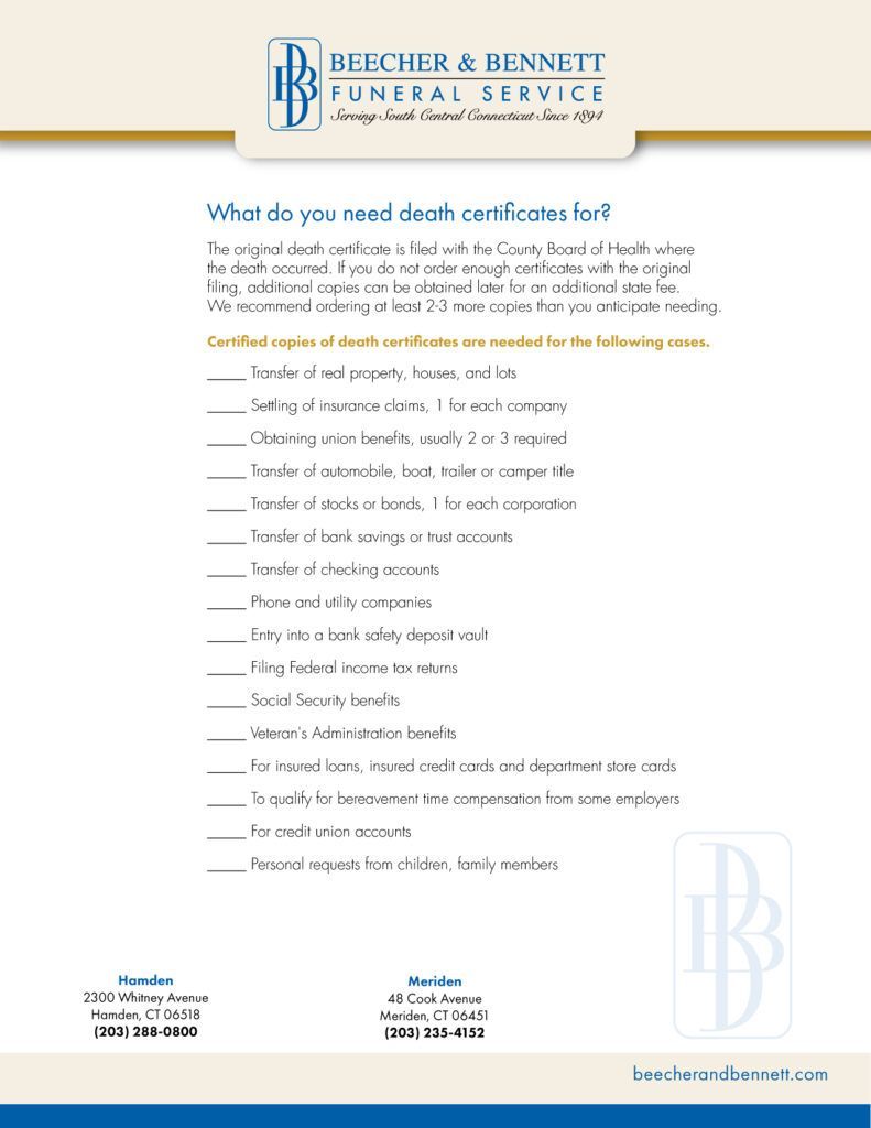 Entities that Need Death Certificates