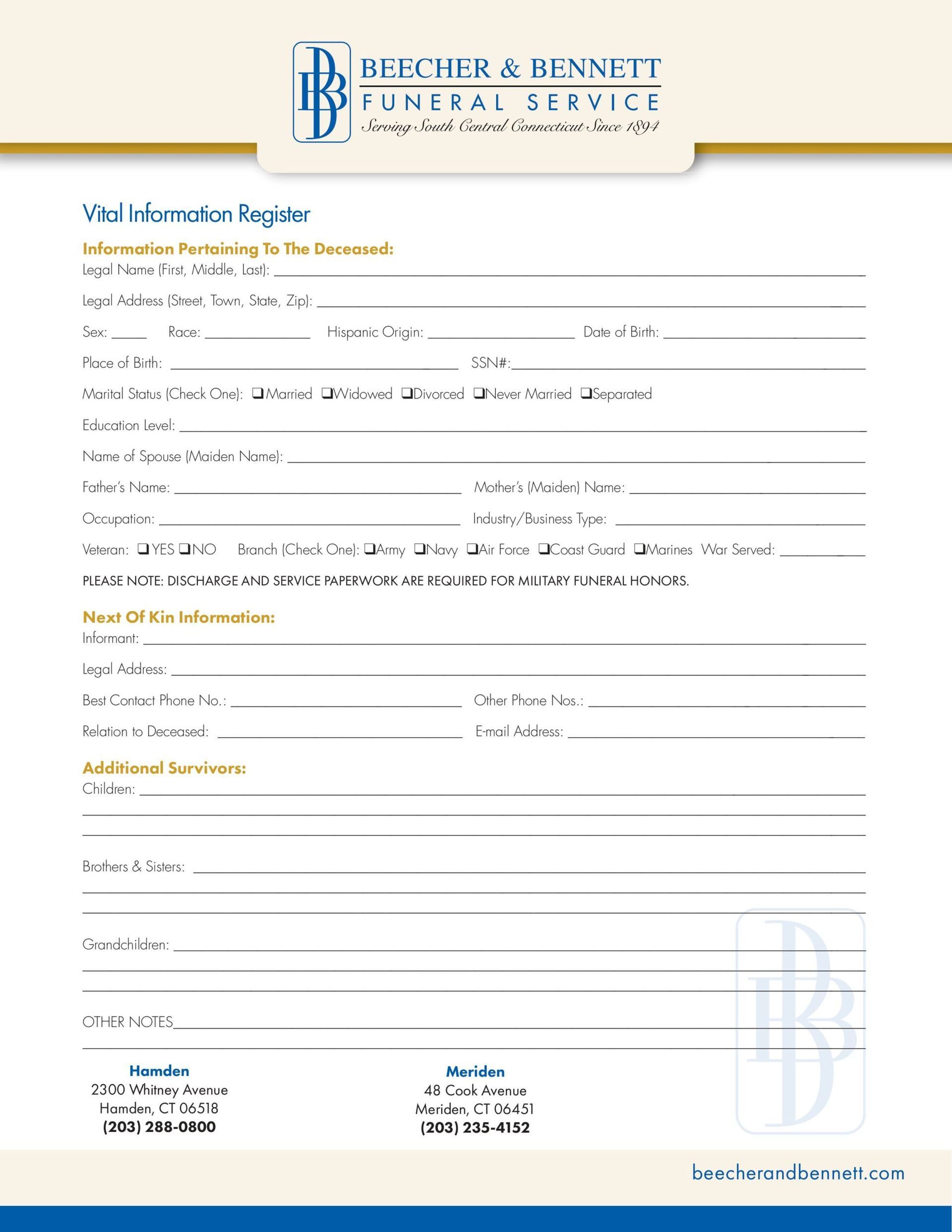 Vital Statistics Form