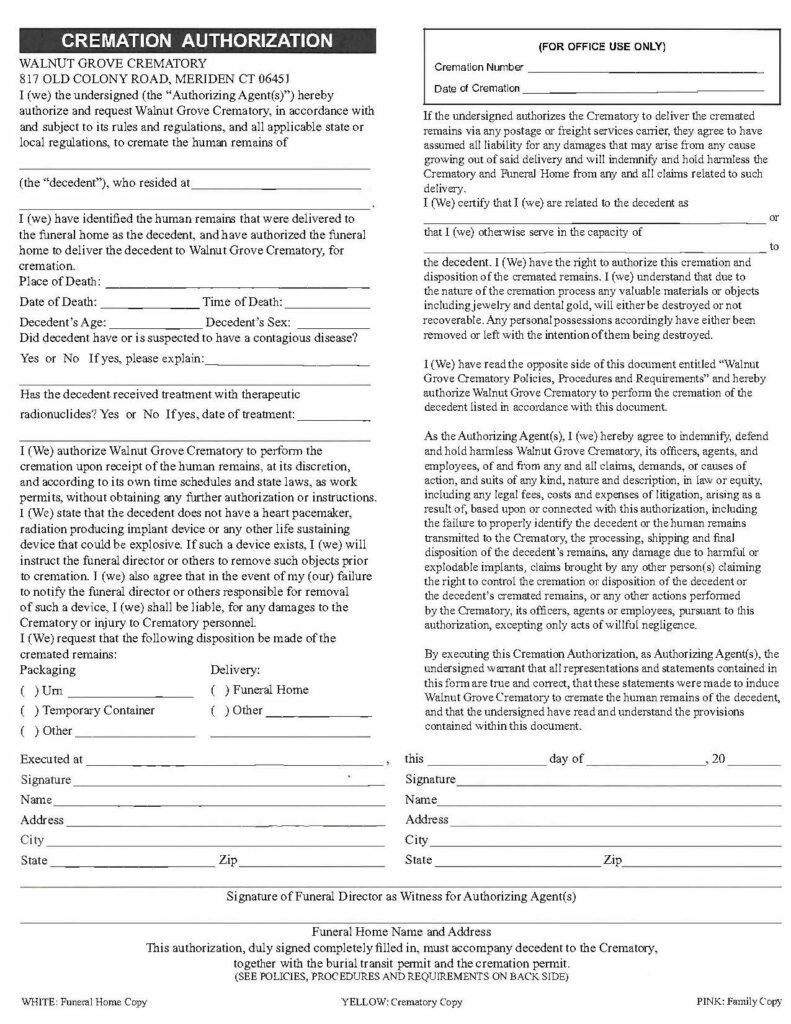 Walnut Grove Crematory Authorization